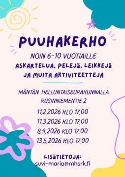 Puuhakerho 6–10 vuotiaille jatkuu keväällä. Luvassa askartelua, pelejä, leikkejä ja muita aktiviteetteja.