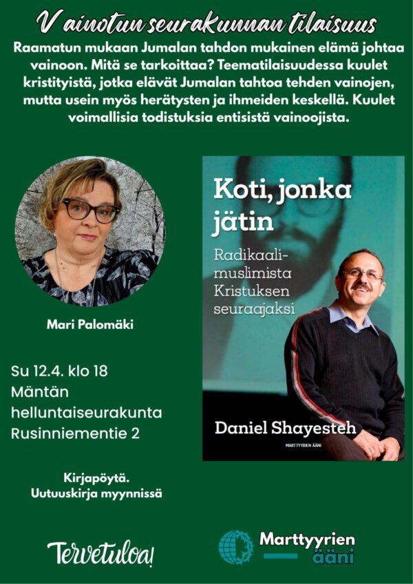 Marttyyrien äänen työntekijä Mari Palomäki vierailee sunnuntaina 12.4. klo 18 Mäntän helluntaiseurakunnassa.